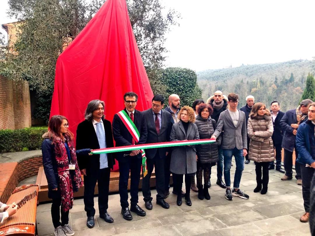 中国和意大利分处古丝绸之路两端。《超越时空的对话——达·芬奇与齐白石》雕塑第三次受到意大利重要艺术机构邀请,在意大利永久扎根,这是我国加强与“一带一路”沿线国家文化交流结下的又一硕果。“作品包含了深刻的寓意,在2020年中意两国建交50周年之际,落户达·芬奇的故乡,必将丰富我们城市的文化,进一步增进两国间的友谊。”芬奇市市长朱塞佩·托尔奇亚在雕塑揭幕现场高兴地说。