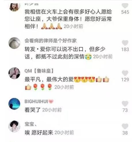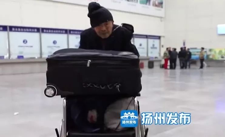 大爷是扬州宝应人,已经84岁高龄了,身体也不是特别硬朗,走路也只能推着轮椅,老伴得了肺癌在北京治疗,如今病重。大爷说要赶去见她最后一面:夫妻本应该是共患难,即使自己身体不方便,推着轮椅也要去。