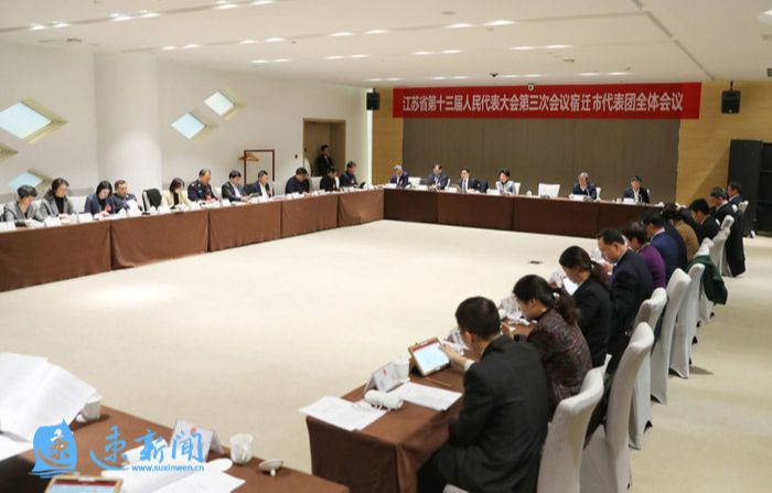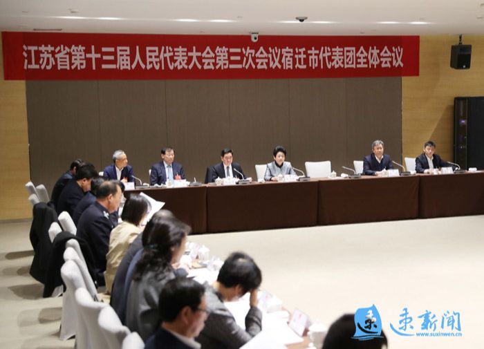 1月18日上午,宿迁代表团举行第四次全体会议。省政协主席黄莉新,宿迁代表团团长、市委书记、市人大常委会主任张爱军,宿迁代表团副团长、市委副书记、市长王昊出席会议。