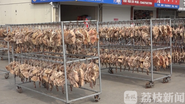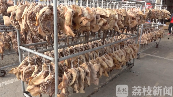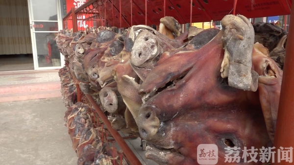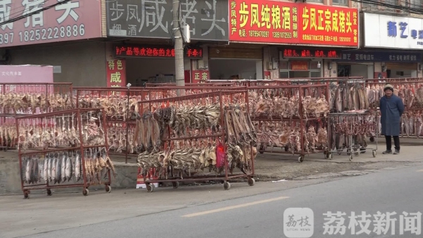 随着新春脚步的款款走近,在盐阜地区,民众有灌制香肠、腌制腊肉、腊鱼、腊鸡的习俗。在以腌制咸猪头而闻名的盐城经济开发区步凤镇小街上,更是一派繁荣的景象,满眼望去,街道两侧挂满了腌制好的咸猪头,到处飘溢着咸猪头的香味,成为一道喜迎新年独特的风景线。