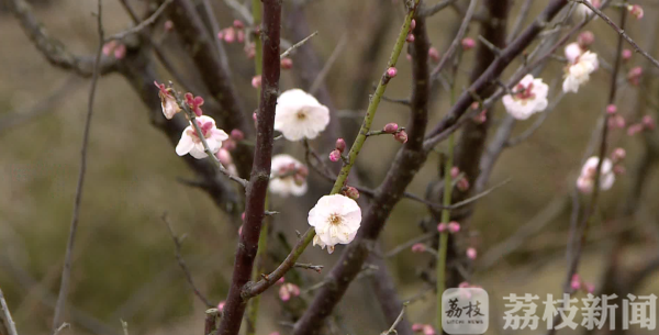 在林屋梅海,白梅开始逐渐绽放,红梅、绿梅等也是含苞待放。“林屋梅海”是我国最大的赏梅基地与梅文化活动中心之一,目前有各类梅花30多种,占地达3000多亩。