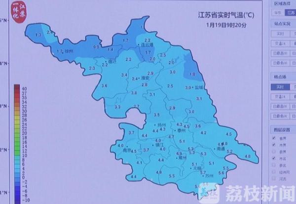江苏省气象局首席预报员张静介绍:“淮北地区的温度在0到3摄氏度,东南角或苏南地区温度高一点,可能有6到7摄氏度,省中间地带大概4到6摄氏度。”