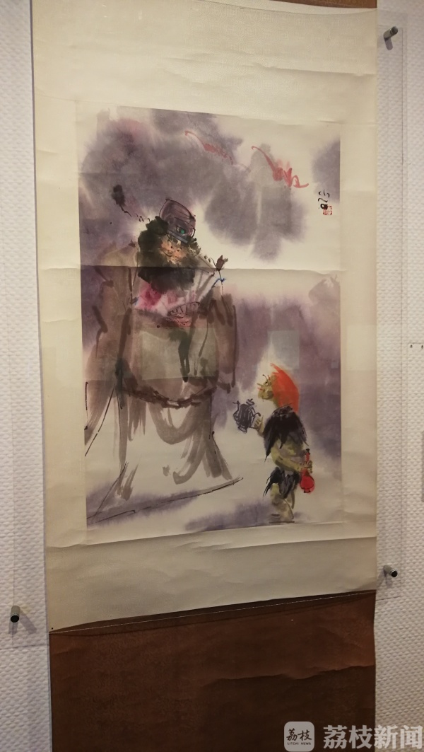 此次还展出一批馆藏的水墨戏曲人物作品,这些作品多以随性夸张的笔墨技法,或细线勾勒,或大笔泼墨,或轻染淡抹,通过塑造人物动态有力地烘托着人物的性格与形象,是戏曲与水墨表现结合的有力探索。