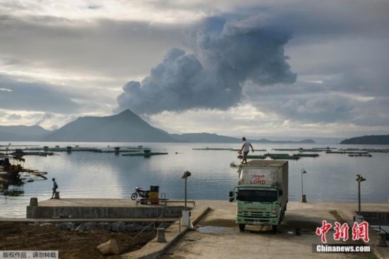 菲律宾首都马尼拉以南的塔阿尔火山于12日开始喷发,许多民众在能够远眺火山的观景处,与火山自拍留念。
