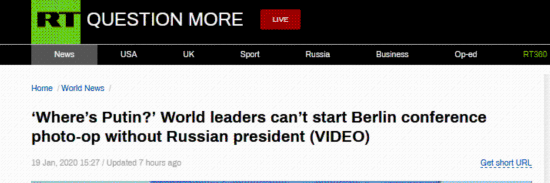 “普京在哪里?”利比亚问题柏林峰会 19日在德国首都柏林召开。“今日俄罗斯”(RT)说,在参会的多国领导人准备在峰会召开前拍张合影时,他们似乎遇到了点小麻烦:由于俄罗斯总统普京还没抵达峰会现场,合影暂时推迟。