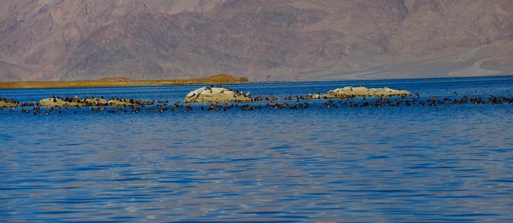 每年春夏之际的5-7月,班公错湖心的鸟岛,便栖息有数万只斑头雁、棕头鸥、凤头麻鸭等二十多种水鸟。