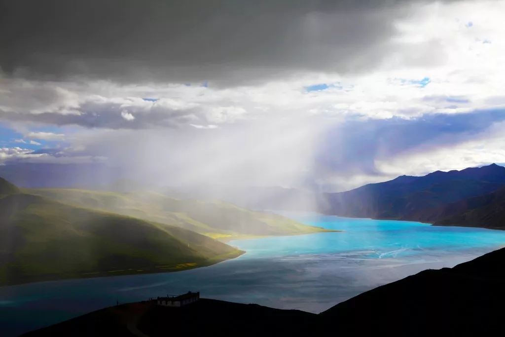 在羊卓雍措身边的每一刻都是幸福的,从云雾笼罩到云开雾散,她都是如此的美丽。听说,她的黄昏同样美丽,她的清晨更加的静谧,她的雪景更加迷人。