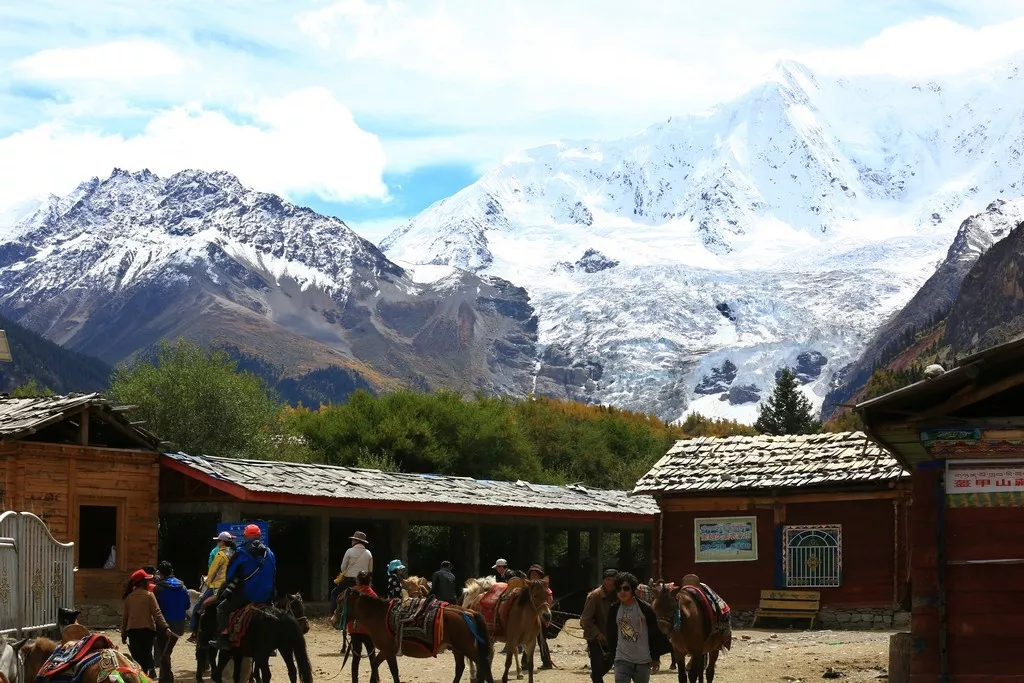 村里的藏民会将牛羊和马儿赶到牧场去,任他们享用着来自雪山和大地的恩赐。