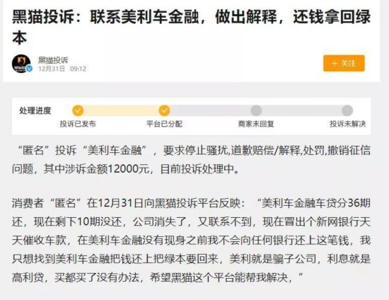 多位来自河南和湖北的美利车金融的二手车贷款客户向券商中国记者反馈,在2019年11月之后,美利车金融的催收电话和短信不见了,反而接到很多来自新网银行的短信和电话催收。此外,在各大网站投诉平台上,美利车金融的贷款客户也在纷纷投诉称,接到了很多新网银行的催收信息和电话。