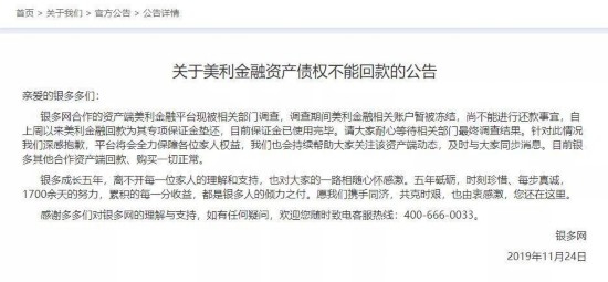 与此同时,美利车金融的资金出借机构也面临无法回款的尴尬境地。2019年11月24日,黑龙江网贷平台——银多网对外发布消息称,由于出借资金不能回款,而且专项保证金使用完毕,导致无法兑付。根据美利车金融招股书披露的数据,主要贷款机构要求的专项保证金仅为贷款余额的5%,大大低于国内汽车金融同业的保证金比例要求。