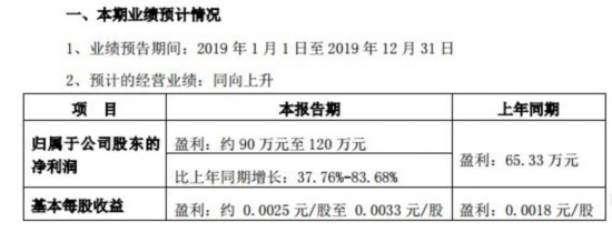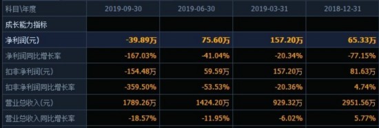 2019年三季报数据显示,报告期内实现营收1789.26万元,同比下滑18.57%;归属于上市公司股东的净利润-39.89万元,同比下滑167.03%。