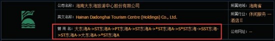 公司经历10次改名,曾用名:大东海A->ST东海A->PT东海A->ST东海A->*ST东海A->S*ST东海->SST东海->ST东海A->大东海A->*ST东海A->大东海A。