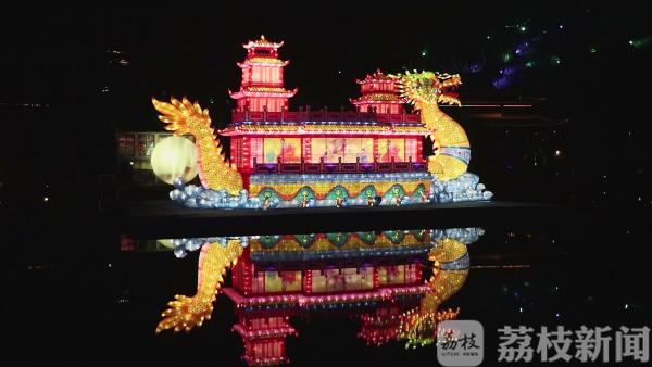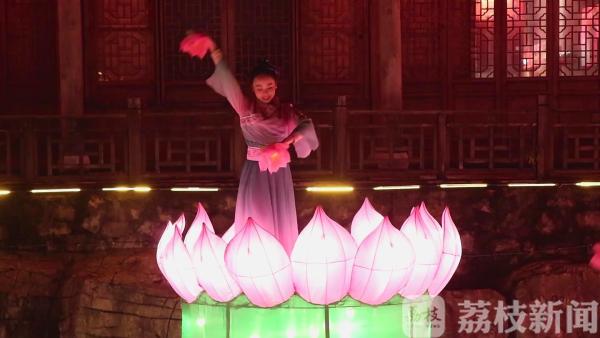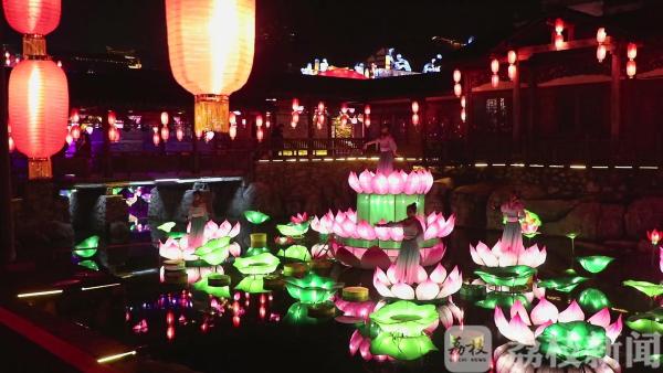今年的宝华山千华古村花灯会以传统民俗为题材,再现了300年前“花山古庙会”的盛景。古村入口的市井文化一条街,除了有各种古代人物造型的花灯栩栩如生,还有“探春”“义薄云天”“传承品德”等取材于历史故事的灯组。“华亭花语”“财源滚滚”“寿比南山”“步步高升”等表达了对新年的美好祝福;布置在水面上的“龙舟盛景”“荷花仙子”“仙鹤延年”璀璨夺目,营造了一个华丽绚烂的光彩世界。