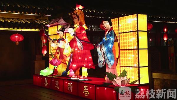 农历新年就要到来,在句容市宝华山千华古村,各式各样的彩灯已全部点亮,把景区装扮的年味儿十足。