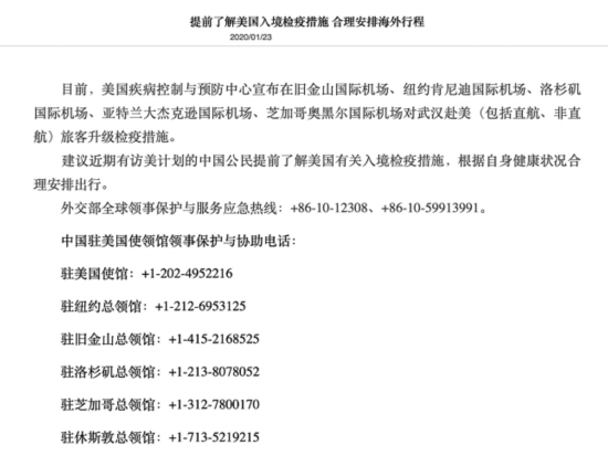 建议近期有访美计划的中国公民提前了解美国有关入境检疫措施,根据自身健康状况合理安排出行。