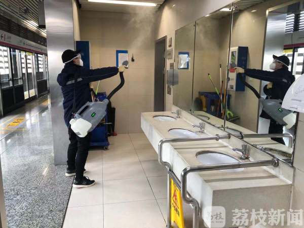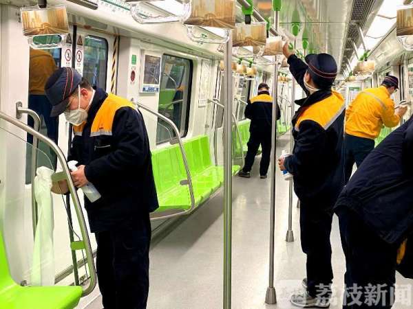 每日早晚两次对全线网所有车站的地面、自动售票机、闸机、安检机、电扶梯和楼梯扶手、卫生间等加强清洁和消毒;运营结束后,对车厢内部喷洒消毒液,同时对所有列车的地面、拉手、立柱、扶手、车窗玻璃、座椅、车门、空调出风口等关键位置进行强化消毒、增加频次。