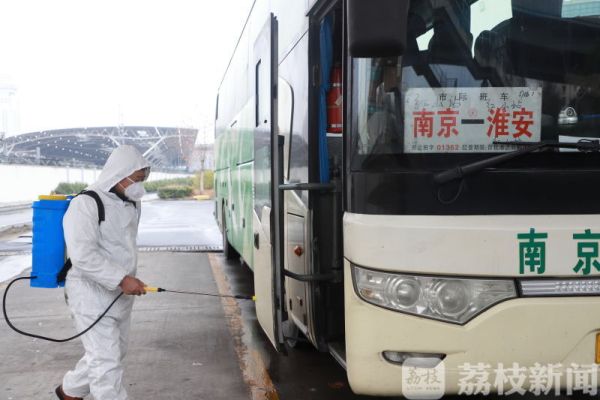 南京长途汽车客运集团成立了防控工作领导小组和防控工作办公室,春节期间24小时在岗待命;同时成立防控工作联络机制和每日报告制度,各运输公司等相关单位一把手为第一责任人,并指定专门联络人,专职负责联络,报告每日防控消毒情况;做好各类专项消毒杀毒工作,组织人员驻站专职开展消杀工作,市区五站以及高淳、溧水汽车站所有车辆在发班前,要开到指定地点,对车身内外进行消杀,凭消毒人员盖章、驾驶员签字,方可上客放行,结束当天营运任务到站下客后再次经过消杀后方可到停车场停放;客运站第一时间对售票处、候车室、广场及周边地区用消毒液进行了消杀。站务公司第一时间成立重大传染病疫情防治工作领导小组,各客运站成立相关领导小组。公司站务运营部牵头,实时关注疫情对旅客的影响,加强与行业主管部门的通联,实时针对上级部门的指令,给予相关班线停、复班。