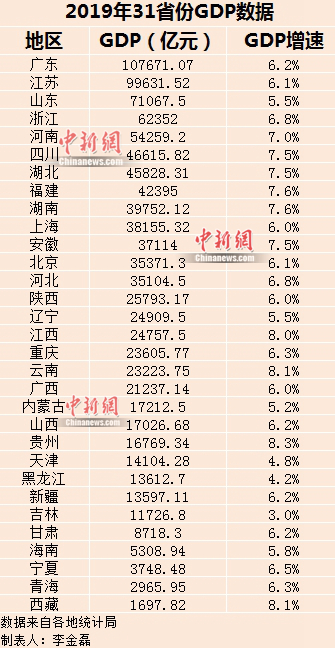 江苏与北京2019年GDP增速为6.1%,与全国增速持平。