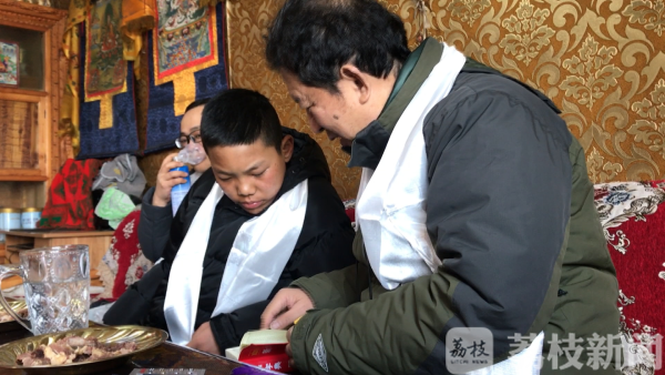 进门,才仁的哥哥嫂子们迎了上来,给大伙戴上哈达。洁白的哈达,代表着对远方来客的欢迎,也蕴含着对返乡亲人的关爱。看到东周才仁有了新耳朵,哥哥欣慰不已。热乎的酥油茶、喷香的牦牛肉端上了桌,这是家人们招待贵客的食物。不过,大伙无暇顾及,同行医生为才仁的耳朵做了最后的检查,老吴抓紧时间,送上最后一份礼物:一本新华字典和一台收音机。“你要学好汉语拼音,多听广播能够提高汉语听写的能力。”老吴细心地嘱咐。