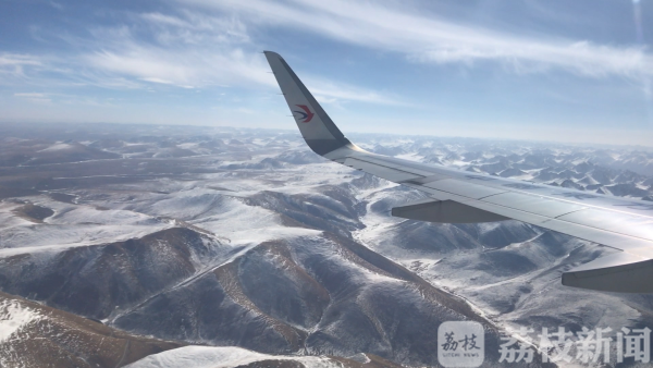 1月16日18:00 ,一行人到太原转机。登上飞往西宁的航班,发现飞机上家乡的元素变多了,才仁很兴奋。算上这一趟,这是他第二次坐飞机。“救生衣在座椅下。”用汉语读完,东周才仁又用藏文读了一遍。舷窗外的风景,在才仁眼里也十分新奇:“奶奶看,电,房子里有电!”“那是城市的灯光。”老吴在一旁解释。