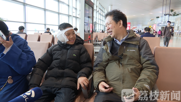 才仁的耳朵上扎着绷带,奶奶查毛不会说汉语。一进机场,老吴就忙开了,帮着他们办理值机、托运行李……机场担心东周才仁再造的外耳在乘飞机时会有风险,同行的主治医师上前解释。
