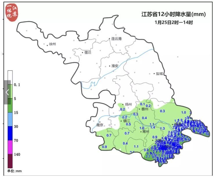 雨水主要集中在沿江及苏南地区