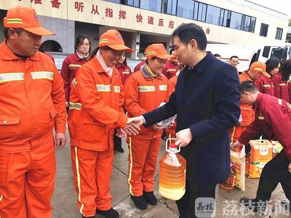 “大年三十是万家团圆的日子,但你们为了城市的干净整洁,选择坚守岗位,非常感谢你们……”昨天一大早,南京市城管局局长金安凡带队来到秦淮区双桥门中转站、市环卫应急中心等,给在岗的环卫工人们递上慰问品,送上新年祝福。据悉,为保障春节长假期间城市卫生,我市近1.3万名环卫工人坚守岗位。