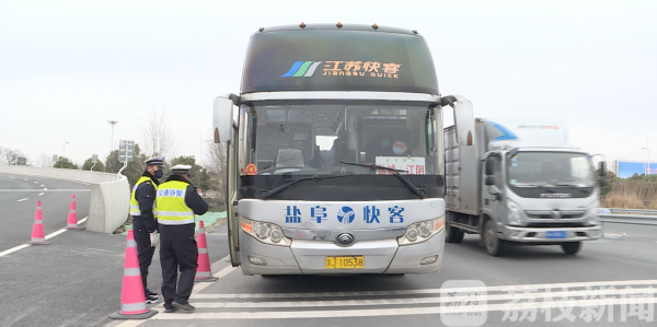 在盐城西高速入口记者看到,道路非常畅通,直通盐城西高速口的高架三期不仅分流了路面车流,也减少了市区部分交通压力,为市民进出大市区提供更多的线路选择。现场的交通民警正在对盐城西高速入口进行路面执勤和交通检查工作,同时向司乘人员宣传安全知识,确保春运安全。