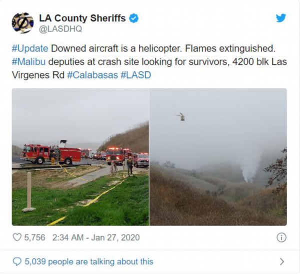 据《洛杉矶时报》证实,在早上10点前,在Las Virgenes路附近、Agoura Road以南发生了一起直升机坠毁事件。有雾的天气使直升机撞上卡拉巴萨斯的一座山上并起火。一位洛杉矶的县警长部门值班指挥官表示,坠机事件导致了在直升机周围燃起了小火。在大火被扑灭之前,事故紧急救援人员无法接近直升机。在科比服役于洛杉矶湖人队期间,他一直有使用私人直升机出行的习惯,而他所购置的直升机型号为Sikorsky S-76。据悉,科比的妻子瓦妮莎(Vanessa)及其四个女儿:吉安娜(Gianna),娜塔莉亚(Natalia),比安卡(Bianca)和卡普里(Capri)并不在此次事故之列。