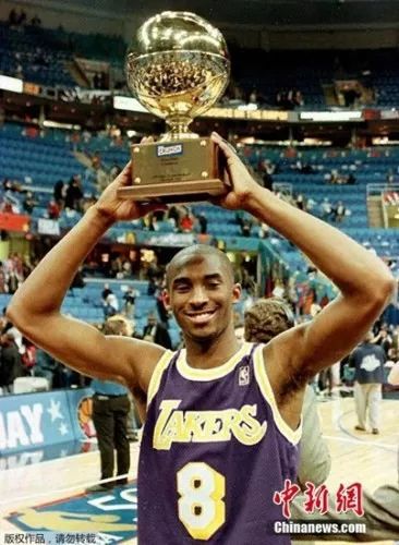 资料图:1997年的全明星扣篮大赛上,科比用一记单手暴扣赢得了当年的扣篮赛冠军,也是获此奖项史上最年轻球员。