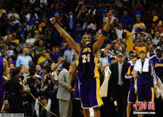 资料图:2009年6月15日,湖人队以99-86击败魔术队,以4-1的大比分夺得总冠军。科比第一次穿着24号球衣,没有了好友奥尼尔的陪伴,带领球队获得了总冠军,同时他也第一次获得了总决赛MVP。