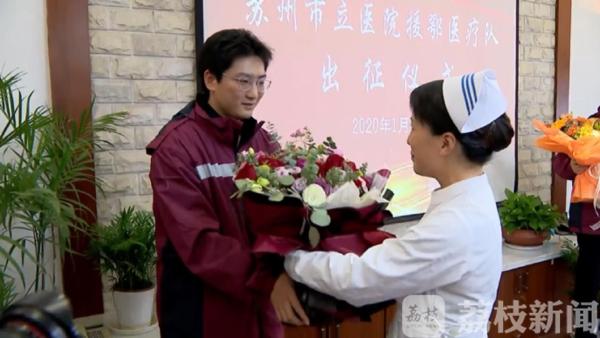 下午,苏大附一院举行出征仪式,感染科主任医师陈祖涛和感染科护士张钰勇赴湖北,驰援一线。