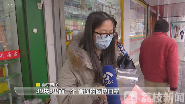 记者沿着南京丹凤街、珠江路走访多家药店,口罩基本处于脱销状态。其中一家药店,今天上午刚到了两箱货,闻讯而来的市民立刻排起了长队购买。一位市民告诉记者,她跑了三四家才买到,价格稍微贵了一点,普通的医护口罩39.8元三个。