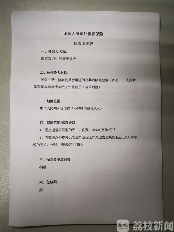 记者了解到,此次风险保障是在原医务人员意外险保障基础上扩展每名医务人员感染保额2万和死亡伤残保额30万的保障。此次保障覆盖南京市所有的参保医疗机构包括公立医院、社区服务中心(含社区服务站、卫生所)等医疗机构。