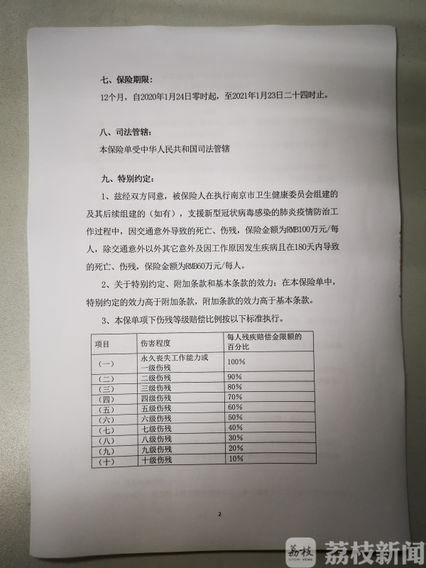 此外,江泰保险江苏营业部联合中国人寿财产南京中心支公司为奔赴武汉前线的医护人员无偿提供每人保额100万的交通意外保障;在新型冠状病毒感染肺炎疫情防控和救治工作中,因履行工作职责被新型冠状病毒感染肺炎而导致身故和全残的每一位医护人员将获得赔偿限额为60万元的保障。