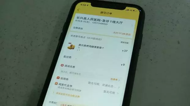 为了印证事件是否属实记者先后在两家不同的医院点了肯德基外卖昨天16点56分记者首先在浙医二院长兴分院一楼急诊大厅下了订单▼