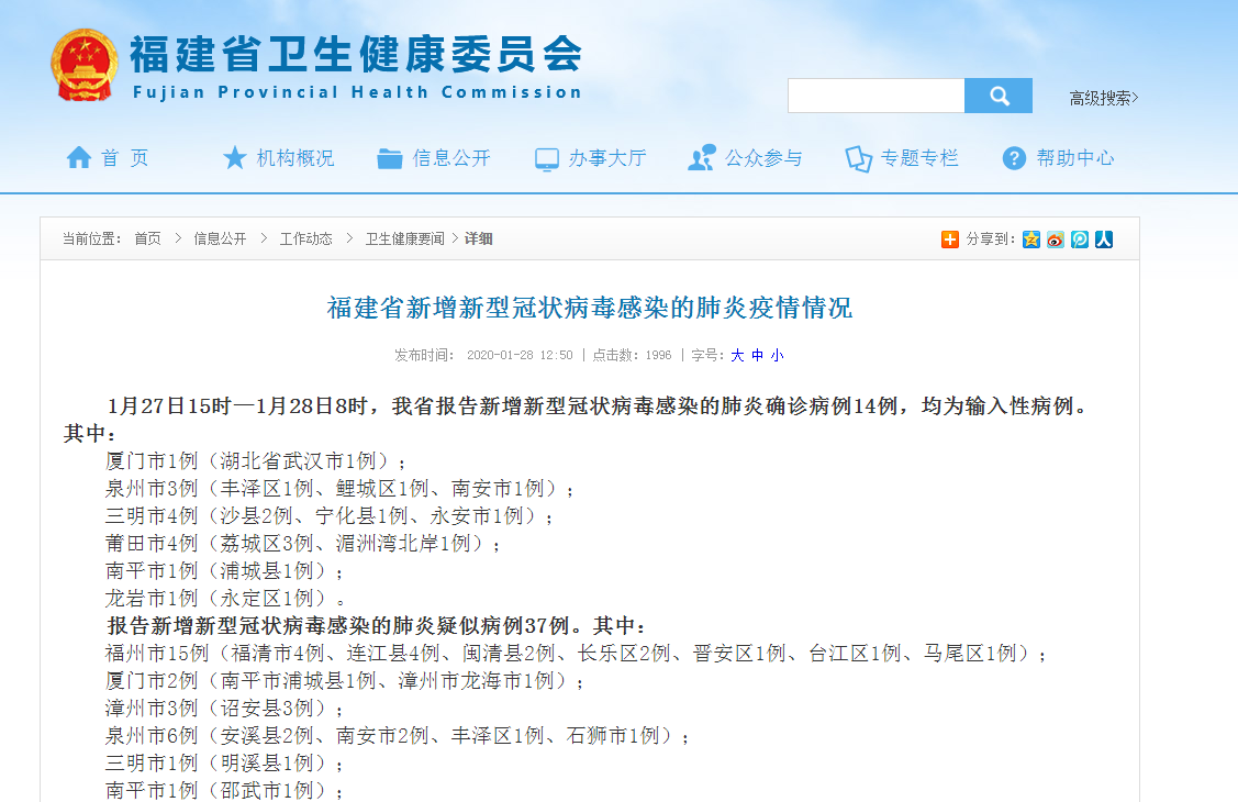 福建省卫健委官网截图