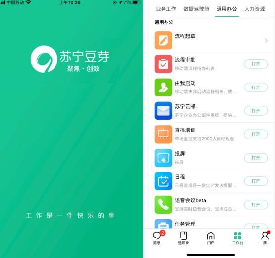 据悉,苏宁将为此次开放协同办公服务计划,成立专门的服务团队,7*24小时响应全社会的需求,有需求的企业或组织可登陆苏宁豆芽的官网下载并注册使用,苏宁豆芽将开放包括即时通讯、通用办公应用套件、音视频会议、跨企业虚拟团队等特色功能: