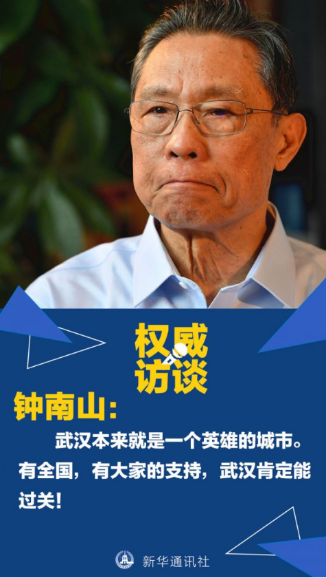 钟南山:武汉本来就是一个英雄的城市。有全国,有大家的支持,武汉肯定能过关!