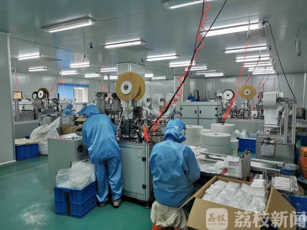 新型冠状病毒感染的肺炎疫情发生以后,人们对口罩的需求量大增。连日来,泰州泰宇医用制品有限公司加班加点,全力保障口罩生产。