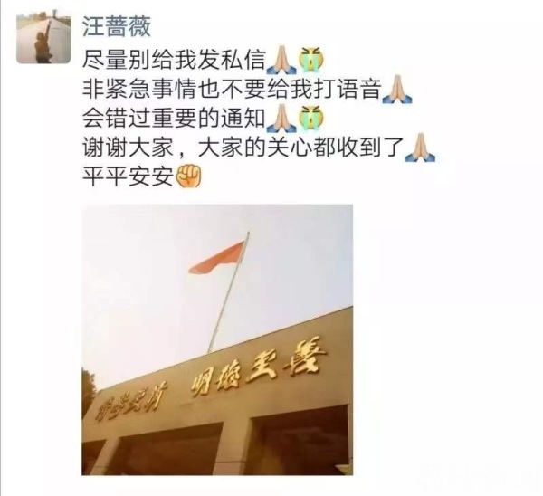 出发前,她发了这样一条状态:谢谢大家的关心,尽量别发私信、打语音,会错过重要的通知。
