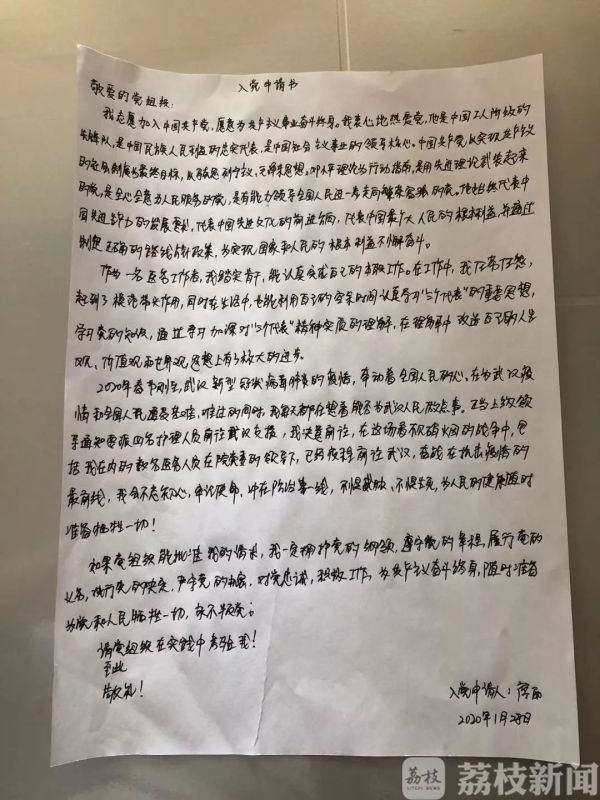 疫情面前,这群白衣战士义无反顾、挺身而出。“战场”上递交的入党申请书,字里行间不仅饱含了她们对党组织的渴盼,更表达了大家战胜疫情、挽救生命的坚定信心。