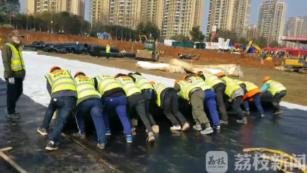 此外,在武汉市蔡甸区火神山医院的建设现场,江苏徐工集团提供的挖掘机、压路机、吊车和水泥搅拌车等设备也在帮助加速医院的建设。目前工人们三班倒二十四小时不间断的工作,已经完成了平时近一个月的任务量。通过连线徐工集团武汉火神山医院援建项目现场负责人王伟,记者了解到,目前工人们正在铺设防渗透材料,随后再铺设钢筋混凝土把路面硬化,硬化完之后,就开始铺设集装箱房。按照计划,火神山医院将在2月2日投入使用。