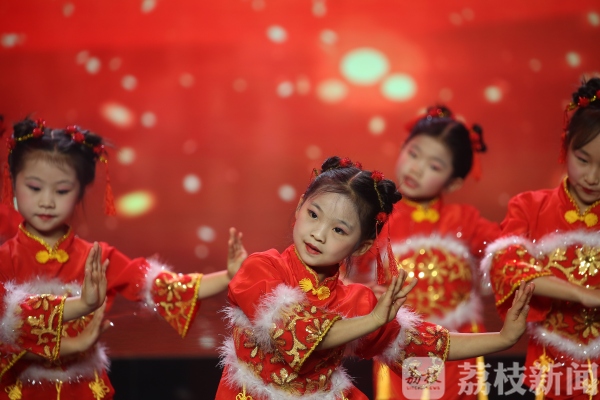 虽然天气寒冷,但是抵挡不了小演员们高涨的热情。他们纷纷盛装出席、闪亮登场,登上属于自己的舞台。17个孩子带来的红红火火的舞蹈《说唱中国红》热情洋溢,拉开了演出的序幕,欢快活泼的表演引来观众的阵阵掌声。