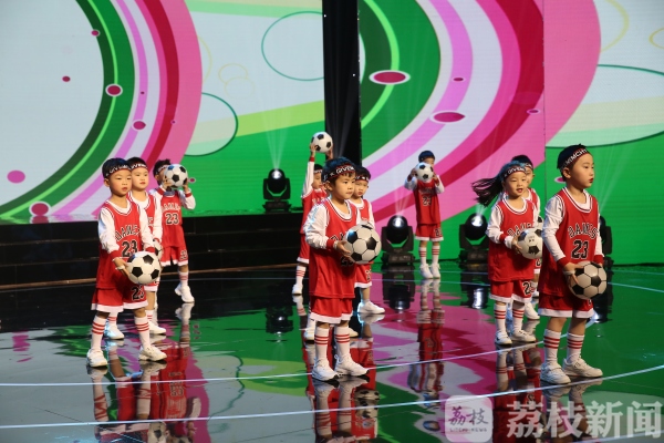 来自南京市江宁区上元幼儿园的20名小朋友带来的啦啦操《哈哈颂》颇有趣味。孩子们踩着动感的节拍,舞动轻快的脚步,展示着舞蹈的美丽。