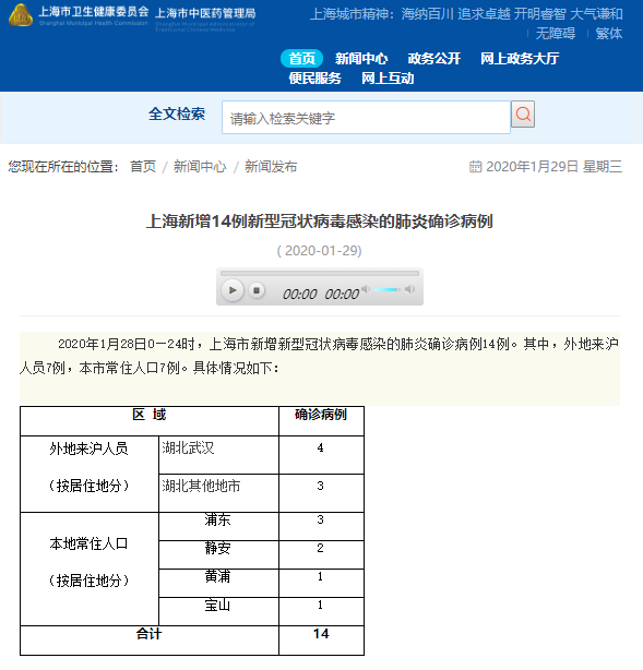 荔枝新闻讯 据上海市卫健委官网消息,2020年1月28日0-24时,上海市新增新型冠状病毒感染的肺炎确诊病例14例。其中,外地来沪人员7例,本市常住人口7例。