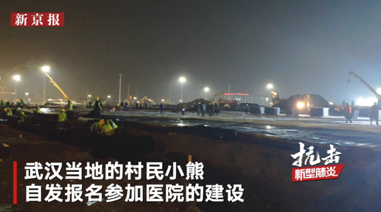 1月29日凌晨,建设中的雷神山医院施工工地灯火通明,工人正连夜抢工。来自武汉当地的村民小熊得知消息后,便和30多个老乡报名来到工地帮忙。由于夜间气温低,小熊只好临时裹上棉被用来御寒。家在湖北黄冈红安县的胡先生今年从成都赶回家过年,收到单位通知后也立刻赶来支援。他说,面对疫情自己并不恐惧“我一家都是医生,我过来支援的时候他们都很赞同我,现在全家都在一线支援。”