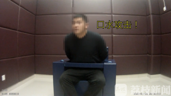 我苏网讯 1月24日晚,无锡市公安局惠山分局陆区派出所民警对一名酒后闹事男子醒酒。不料,该男子不仅不配合,还称“我刚从武汉回来,还得了病”,竟然对着民警哈气吐口水。