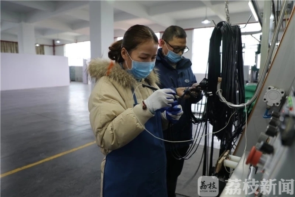 “明早还要发两批货出去,大家抓紧点,加油!”今天下午,镇江市华银仪表电器有限公司车间内,正在赶工的近30名工人加快了本就已经非常迅速的操作动作,“我们加快点生产电源线,医用设备才能早一点在疫情防控上派上用场。”