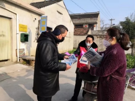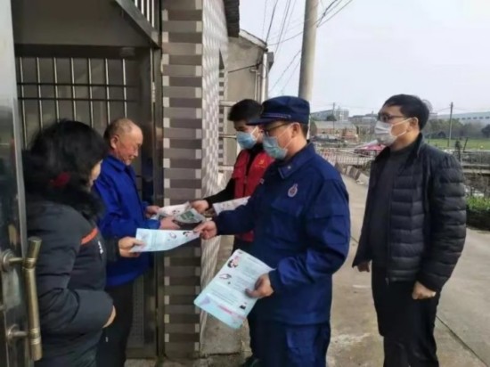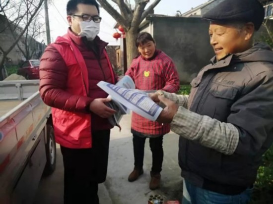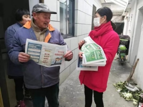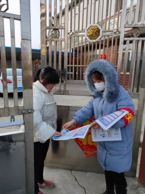 挨家挨户发放防疫宣传资料